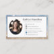 Faça uma impressão duradoura com este cartão de visita elegante projetado especialmente para planejadores e coordenadores de eventos. Apresentando um layout moderno com uma foto personalizável, seu nome, título e detalhes de contato do cheio, este cartão transmite profissionalismo e estilo. O fundo baseado no azul-chic e no brilho dourado adiciona um toque de sofisticação, fazer-o perfeito para planejadores de casamento, estilistas de festas ou gerentes de eventos corporativos. Uma maneira refinada e memorável de se conectar com os clientes e mostrar sua marca.