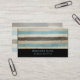 Um cartão de visita profissional com cores de praia legal e modernas. Mão pintada com aquarelas em um padrão listrado horizontal. As cores incluem azuis legal e castanhos mudos que vão de creme a castanho escuro.