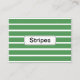 Green Stripes Cartão de visita design original de Nisha Prabhu. Totalmente personalizável. Personalize com seus detalhes. Faça uma impressão duradoura com a nossa Cartão de visita na moda Verde Stripes! Apresentando um design moderno de faixas verdes vibrantes, esta carta combina profissionalismo com um toque de personalidade, perfeito para empresários, freelancers ou qualquer pessoa que queira se destacar em sua indústria. O padrão de greve verde é versátil, mas distinto, fazer que seja uma excelente escolha para empresas em áreas criativas, indústrias ecológicas, ou qualquer um que queira fazer uma declaração. Quer você esteja trabalhando em rede em um evento, conhecendo um cliente potencial ou simplesmente compartilhando suas informações de contato, este cartão de visita deve deixar uma impressão memorável.