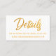Mantenha seus convidados de casamento juntos com todos os seus detalhes com esses cartões de inserção bonito e abrangentes. Estes cartões bonito refletem um estilo elegante e casual. As sobreposições de texto elegantes foram projetadas usando uma fonte de script moderna, em negrito e casual, embelezada com um efeito falso de folha de ouro. Um lado diz "Salvar a Data" e o outro simplesmente "Detalhes". Use os campos modelo para personalizar essas placas de gabinete com suas informações pessoais. Impresso com a "tecnologia de cartão de visita", o tamanho útil será fácil de manter à mão. Envie-os por e-mails tradicionais e guarde alguns por perto para compartilhar com aqueles que precisam de um ou dois extra! O fundo é branco e esta cor editável pode ser alterada para qualquer coisa da paleta de casamento que você escolher; todo o texto editável é exibido em uma matiz de ouro complementar. // 89 // Projetada por Melody Watson para Muserie de Papel.