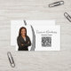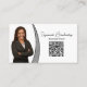 Há apenas uma lasca de falso brilho prateado nesta frente e atrás deste design frontal de cartão de visita. A frente apresenta um espaço reservado para fotos à esquerda com nome de modelo e título mais código QR à direita. O verso inclui um design coordenado com campos de texto para o nome e os detalhes da empresa. Substitua a foto do marcador de posição pela sua fotografia de formato vertical e pelo link de um código QR. Personalize os campos modelo ou edite usando a ferramenta design para selecionar um estilo de fonte, tamanho e cor desejados. Use o link de código QR para enviar clientes em potencial para seu site, página de revisão, fotos ou outra página relacionada a negócios. A foto do marcador de posição é cortesia em pixabay.com.