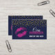 © 2018 Designs socialitas. Cartões de visitas de maquiagem assos que incluem lábios brilhantes de falso rosa-quente e confete de aspecto dourado. Saia na multidão com esta cartão de visita MUA divertida.
