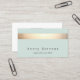 Design de cartão de visita vertical elegante, na moda, com três tiras de folha de alumínio horizontal FAUX de ouro sobre fundo azul-aqua claro. Isto NÃO é uma folha de ouro real - mas uma imagem. Não há brilho ou textura. Um cartão de chamada versátil para profissionais criativos e empresários. Esta versátil placa de rede também é excelente de salões de beleza, estúdios de dança, boutiques de moda, planejadores de casamento, designers de joalharia, cabelos ou qualquer outro profissional sensível à imagem.