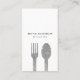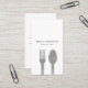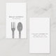 Cartão de visita de catering com falso garfo prateado e imagem da colher. Entre em contato comigo se tiver perguntas ou solicitações.