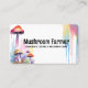Cartões de visitas de fazenda de cogumelo com uma design de cor d'água colorida.
