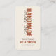 Feita à mão com cartão de visita vertical amorosa com tipografia moderna e de grande porte. O manual feito com amor é escrito com impressão de manchete e script manuscrito sobreposto. O modelo está configurado para personalizar com seu nome e/ou nome da empresa, slogan(s), detalhes de contato e mídia social. Sinta-se à vontade para personalizar conforme necessário e apague todos os ícones de mídia social que você não precisa. Este cartão de visita tem uma paleta colorida de creme, castanho e siena queimada.