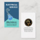No verso, em um cobrir branco, o logotipo da tomada de energia dourada que você pode usar está no topo. Isso é seguido pelo nome da empresa, seus detalhes de contato e uma opção de slogan para anunciar seus serviços.
