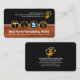 Uma camada superior de cinza escura com uma peça de madeira marrom inferior é demarcada por uma linha branca que hospeda quatro ícones de ferramenta de construção de mão-cheia. As ferramentas podem representar parte do trabalho ou serviço que você pode oferecer. Por exemplo, o martelo pode representar carpintaria (ao lado da camada de madeira), a pá para paisagens, a torneira doméstica para canalização e o telhado da lâmpada para trabalhos elétricos. Perto da base está o nome comercial e uma lista de serviços que você pode oferecer. ; Altere-os para atender às suas necessidades de serviço. Na parte superior do cartão, você tem um logotipo de linha de rodas para casa que pode usar com seus contatos ao lado. No verso, em uma cobrir escura, o logotipo da barra de rodas está no topo, seguido do seu nome prestigioso, dos seus dados de contato e de uma legenda de slogan para divulgar seus serviços. Um design criativo para a construção, para o pessoal e para o melhoramento de casa.