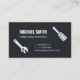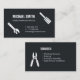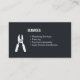 Um cartão de visita com ícones de silhuetas de ferramentas úteis, que incluem chave de fenda, spanner e cortador de fios. Paleta de cores preto e branco clássica. Personalize com suas informações comerciais nos modelos de texto fornecidos.