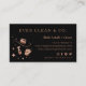 Cartão de visita de empregada profissional e serviços de limpeza de casa. Nosso design apresenta nosso esfregão, frasco de spray e balde em folha de rosa falsa com uma borda cintilante. Personalize com o nome da sua empresa, detalhes de contato e identificador social. O verso apresenta nosso padrão de limpeza elegante que combina: um esfregão, balde, aspirador, frasco de spray e espanador de penas. Todas as ilustrações e logotipos são obras de arte originais da Moodthology Papery