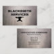 Um simples cartão de visita com uma ilustração de uma bigorna e informações personalizáveis sobre um fundo de chapa metálica vestida. Perfeito para atividades como ferreiro, ferreiro, artista de ferro em forma de ferreiro, feirante, etc.