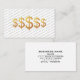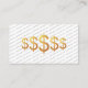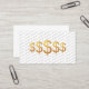 This striking financial advisor business card blends modern minimalism with a bold, premium focal point. A detailed dollar symbols sits centered on a white background, creating an immediate sense of value and professionalism. Behind it, the phrase FINANCIAL ADVISOR repeats in warm diagonal lines, forming a subtle, high‑end pattern that adds movement without overwhelming the design. The result is a sleek, confident card that communicates expertise, clarity, and trust at a glance — perfect for advisors who want a memorable, design‑forward presentation.