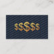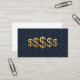 This striking financial advisor business card blends modern minimalism with a bold, premium focal point. A detailed gold dollar symbols sits centered on a deep navy blue background, creating an immediate sense of value and professionalism. Behind it, the phrase FINANCIAL ADVISOR repeats in muted blue gray diagonal lines, forming a subtle, high‑end pattern that adds movement without overwhelming the design. The result is a sleek, confident card that communicates expertise, clarity, and trust at a glance — perfect for advisors who want a memorable, design‑forward presentation.