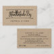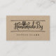 Cartão de visita perfeito para alfaiates, costureiras, empresas de costura ou fazeres feitos à mão, produtos artesanais. Design apresenta "Handmade By" com a letra "d" criada para se parecer com um arco de fita. "Manuscrito por" exibido em um emparelhamento de texto de estilo manuscrito com na moda. Personalize com seu nome, informações de contato, site e informações de mídia social. Nota: as cores podem ser alteradas de acordo com a sua preferência de design e imagem de marca. Trabalho de arte por Moodthology.