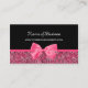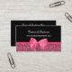 Faça uma declaração de moda com este cartão de visita impressão de chita preto e rosa giro, com uma fita rosa e bonita amarrada em um na moda, adicionando seu nome, site e informações de contato. Este design de impressão na moda cor-de-rosa é chique e feminina e vai apelar às mulheres como clientes.