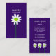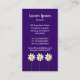 Um cartão de visita atraente com um simples motivo de flor desenhado à mão. Nome da empresa e tipo de negócio na frente com nome e outros dados de contato no verso com um motivo de três flores.