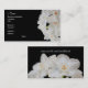Um cartão de visita simples, mas elegante com flores brancas em um fundo preto. Personalize o texto para caber suas próprias necessidades pessoais. Obrigado muito parando perto!
