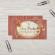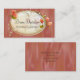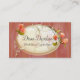 O cartão de visita elegante feito em um pêssego coloriu o cetim que olha o fundo. Os gráficos bonitos de uma área de texto oval moldada floral do pêssego decoram a parte dianteira média do cartão. Personalize o texto, a parte dianteira e a parte traseira, neste cartão de visita chique para seu negócio. Excelente para floristas, consultantes wedding, estilistas e mais.