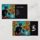 Cartão De Visita FLORES DE GABINETE COM GATO EM Papel preto monogra