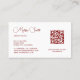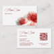 Este cartão de visita profissional único apresenta uma flor vermelha etérea transparente sobre fundo branco. Design elegante para maquiadores, spa, planejadores de casamento, planejadores de eventos, cosmetólogos, salão de beleza, floristas, paisagismo, jardineiro, agente imobiliário.. com um código qr digitalizável nas costas.