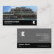 Um modelo de cartão de negócios atrativo concebido tendo em vista a indústria da construção, mas que poderia ser adaptado a muitas outras utilizações. A imagem na área da tela pode ser alterada, se necessário, pois a faixa de exibição inferior é um gráfico separado. Os logotipos (frente e verso) usados neste exemplo são um símbolo de uma das fontes de imagem úteis e atraentes do Zazzle e podem ser substituídos por um símbolo diferente, ou seu próprio logotipo.