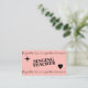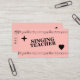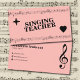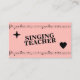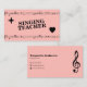 Um simples cartão de visita com fundo rosa, lençóis musicais, uma estrela e um coração. As costas vêm com informações de contato totalmente personalizáveis e uma ilustração de clivagem tripla. Perfeito para aulas de música, professor de canto, treinador vocal, intérprete de músico, etc.