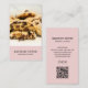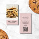 Promova seu doce negócio em estilo com este cartão de visita de padaria rosa, personalizável, perfeito para fabricantes de biscoitos, padeiros, chefs de pastelaria e padarias de butique. Personalize-o com a sua própria fotografia para mostrar as suas criações deliciosas, adicione o seu código QR exclusivo para um acesso fácil ao seu Web site ou menu e atualize os ícones substituíveis das mídias sociais para corresponder à sua marca. Uma maneira moderna e profissional de se conectar com os clientes e expandir seu negócio de padaria.