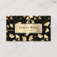 Cartão de visita de fundo de folha de ouro elegante para ambos os proprietários de pequenas empresas. O design apresenta um delicado padrão foliar no estilo clássico. Perfeito para um belicista ou dono de um salão de beleza, maquiador, fabricante de fantasias, cabeleireiro ou cosmetólogo. Há muito espaço para os identificadores de mídias sociais e detalhes de contato. Este cartão de visita de estilo artístico irá definitivamente impressionar os seus clientes.