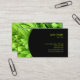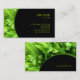 Cartão de visita genérica com folhas verdes frescas em fundo preto. Adequado para atividades ambientais, agricultura, comércio ecológico, produtos naturais ou cosméticos, etc. Totalmente personalizável, adicione suas próprias informações e escolha forma e formato.