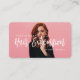 Cartão de visita de Especialista em Extensão de Cabelo Moderno e Trendy. Nosso design apresenta um layout de foto de cheio, com o nome e o título exibidos sobre a imagem em uma fonte de script de pincel branco em negrito. O verso apresenta um design branco e preto moderno, ousado e moderno (note que você pode mudar para qualquer cor para se adequar à sua marca). Personalizado com seu nome, título, informações de contato e nome de identificador de mídia social, este cartão de visita é perfeito para cabelos, estilistas de especialistas em extensão de cabelo e muito mais.