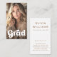Cartão de visita de rede de fotos de graduação de cores moderna, moderna, branca ou personalizada com o texto "formando" em uma fonte retroativa e em negrito na frente. Adicione seu nome, ano, escola e foto. Você pode alterar a cor de fundo, as fontes e as cores da fonte, mover e redimensionar os elementos com a ferramenta design.