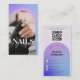 Um design simples e brilhante com uma foto personalizada com fundo brilhante roxo. Adicione facilmente seus detalhes clicando na opção "personalizar este modelo". Perfeito para profissionais de beleza: estilistas de maquilhagem, artistas de pregos e cabeleireiros.