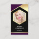 Cartão De Visita Foto do Código QR do Modelo de Folha Ouro Roxa Atr