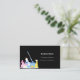 Um cartão de visita elegante e glamouroso sobre fundo preto decorado com equipamento de limpeza. Personalize e adicione sua foto, nome, informações de contato de texto e seu próprio código QR ao seu endereço de site.