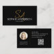 Cartão De Visita Foto do Monograma Elegante moderno QR Preto Dourad