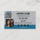 Cartão de visita com sua foto e logotipo em um azul-lacrimejo com design de cinza. Na parte de trás está um modelo de código QR, assim como outra foto. Você pode substituir ou excluir os ícones das mídias sociais de acordo com as suas necessidades. Perfeito para especialista em malhações ou treinador pessoal.
