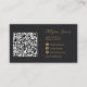 Um cartão de visita de ouro e preto elegante e moderno projetado para penteados e maquiadores. A frente apresenta espaço para uma foto profissional e um elegante design inicial, enquanto a parte traseira inclui um código QR funcional para fácil acesso ao seu site ou portfólio, além de espaço para seus detalhes de contato e mídias sociais. Perfeito para profissionais de beleza, estilistas de noivas e donos de salões que querem fazer uma impressão ousada e na moda. Totalmente editável para seu nome, logotipo e detalhes.