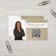 Uma sutil brilha dourada dispara o fundo deste design de cartão de visita com um espaço reservado para fotos à esquerda com o nome do modelo à direita. O verso inclui um design coordenado e cores com campos de texto para o nome e os detalhes da empresa. Substitua a foto do marcador de posição pela sua fotografia de formato vertical e pelo seu código QR na frente. Preencha os campos modelo ou clique em personalizar para selecionar um estilo de fonte, tamanho e cor desejados. Use o link Código QR para enviar clientes a resenhas, fotos ou outros links. A foto do marcador de posição é cortesia em pixabay.com.