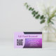A ombre de brilho roxo se desliga da frente deste design de cartão de visita com um marcador de posição de código QR e detalhes comerciais. O verso inclui sua foto. Substitua a foto do espaço reservado pela sua fotografia e adicione seu código QR à frente. Preencha os campos modelo ou clique em personalizar para selecionar um estilo, tamanho e cor de tipo desejados. A foto do marcador de posição é cortesia em pixabay.com.