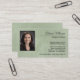 Este cartão de visita verde sábio apresenta um design que é simples, mas feminino e profissional. Ele tem espaço para sua foto à esquerda com seu nome ou negócios é escrito em letras elegantes de script moderno com espaço para uma linha de tag ou título e informações de contato. Excelente maneira de fazer uma primeira impressão.