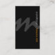Este elegante e ousado fotógrafo de artes visuais e cartão de visita de mídia apresenta um grande roteiro em negrito, cinza escura, bem no meio da placa, sobre um fundo preto. Seu nome e título aparecem verticalmente na borda direita da placa em laranja e branco. Seus outros detalhes de contato, incluindo o logotipo da sua empresa, aparecem na parte traseira da placa. A parte traseira da placa também apresenta uma letra de monograma menor na mesma fonte de script. Concebidos para fotografia, vídeo, filme, meios de comunicação, artes visuais, meios de comunicação visuais, capacidades de representação gráfica, produção de meios de comunicação, produção poste, negrito, clássico, elegante, temas monográficos.