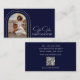 Na moda Modern Script Photo QR Code Fotografia Código QR Cartões de visitas fotógrafos apresentam um script de ouro e elegante com seus arcos favoritos de dentro prata com detalhes de sua empresa e seu site de negócios personalizado Código QR no verso. No verso estão os seus contatos personalizados. Concebido por © Evco Studio www.zazzle.com/store/evcostudio