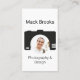 Fotografia e Design de código QR profissional Um modelo de cartão de negócios personalizado profissional com a combinação de estilo de forma de câmera pode ser facilmente atualizado com sua foto ou logotipo, código QR, Nome, Título da profissão, Endereço, Telefone, Telefone celular, Email e Site. O que pode ser alterado: Cor de Fundo. Logotipo, código QR, endereço. Precisa de mais mudanças. Por favor, sinta-se à vontade para me contactar. Estou feliz em ajudar com a sua personalização.