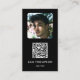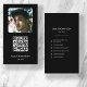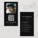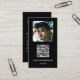 Um cartão de visita minimalista negro personalizado para quem quiser colocar uma fotografia na frente da cartão de visita. Uma maneira simples e profissional de apresentar sua presença empresarial, empresarial ou corporativa. Personalize a parte frontal do cartão de visita com sua foto e adicione código QR e detalhes no verso. Crie seu cartão de visita único e elegante. Ícones das mídias sociais incluídos na design deste cartão de visita para você usar.