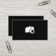 Um design simples mas moderno. Um fundo preto com uma câmera branca no centro do cartão. Toda a informação é na parte de trás do cartão. A cor do fundo pode mudado.