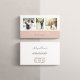 Um cartão de visita de fotógrafo simples e profissional, com bloqueio de cores e uma colagem de 3 fotos com tipografia ousada e moderna em preto suave. A parte traseira da placa contém todas as informações de contato e três ícones de mídia social em cor-de-rosa-claro e campo para seu nome de usuário. Copyright Elegant Invites, todos os direitos reservados.