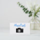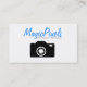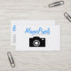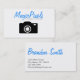Um design simples e moderno com o nome de sua empresa em uma cor azul-céu em uma fonte de script e uma breve descrição de seus serviços escondidos embaixo em uma cor de cinza clara e um bonito gráfico moderno de uma câmera, todos colocados em um fundo branco limpo. Coloque as informações de contato no verso em fontes e cores correspondentes. Este é um cartão de visita muito moderno e profissional que pode funcionar para muitas profissões.