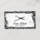 Cartões de visitas com moldura de Tesoura Negra com Estilhação Preta com Cabelo.