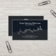 No topo está o seu nome prestigioso e o título do cargo, com os detalhes de contato perto da base do cartão.