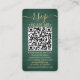 Simplifique as respostas de RSVP e forneça todos os detalhes importantes com as placas modernas de gabinete de código QR. Todo texto é simples de personalizar, incluindo texto que diz "rsvp scan me scan". Para fazer seu próprio código QR usando o gerador, basta digitar o URL do site no modelo. Ao digitalizar o cartão com seus telefones, os convidados são enviados diretamente para o site do casamento para responder ao convite. Um processo de rsvp on-line reduz a chance de que as cartas sejam perdidas no correio. Também é mais versátil, na medida em que você pode pedir informações mais detalhadas, como escolhas de refeições, alergias à comida e pedidos de música. Todas as informações de resposta podem ser personalizadas ou excluídas. O design verde e dourado apresenta um fundo metálico piscado, caligrafia com na moda e tipografia elegante e clássica. Observe que o ouro é impresso a cor, não a folha metálica. Este cartão é uma forma moderna de pedir aos convidados do casamento que respondam gentilmente à sua próxima celebração especial.